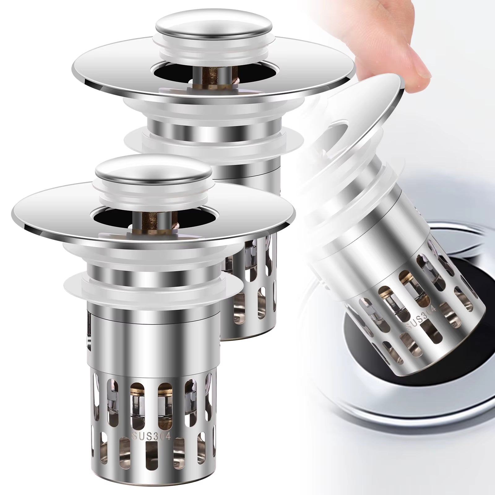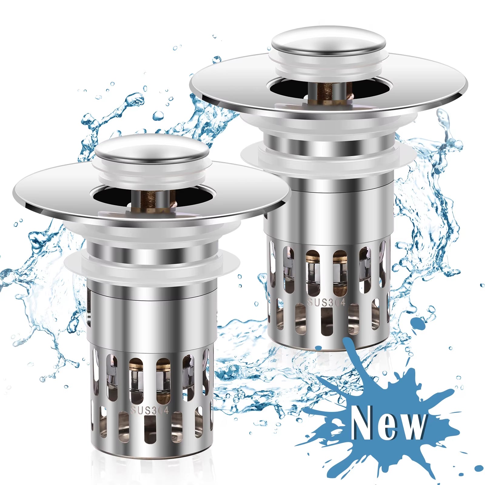 Pop Up Construction: Designed to solve the problem of clogged bathroom sinks, this sink plug is equipped with a hair catching feature. It features a pop up structure that makes it easy to open and close the drain and has a removable stainless steel strainer basket that is easy to clean